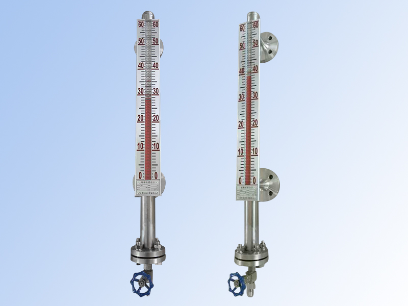 磁翻板液位计是根据磁性原理,阿基米德(浮力定律)等原理巧妙地结合机械传动的特性而开发研制的,是一种专门用于液位测量的仪表,在其检测的同时我们赋予了它们更多的实用功能。其中控制型就是在磁翻板液位计的基础上增加了磁控开关,该磁控开关信号可用于对液位进行位式控制或报警;防霜型液位计,保证了在检测低温液体的情况下使液位计不结冰(如液体CO2),有效的确保了液位计的正常工作。而远传型是在磁翻板液位计的基础上增加了4~20mA变送传感器,由于该液位计采用新颖设计,提高了传感器的灵敏度,其远传信号几乎无温漂和长期稳定性,是它始终与现场液位计指示保持一致,在检测液位的同时将液位的变化量通过变送传感器转换成4~20mA标准电流信号传至控制室,实现远程监测和控制;由于磁翻板液位计的指示器、磁控开关、以及变送传感器均与主体管内被测介质完全隔离设计,使液位计工作在高温(可达350℃)、有压、有毒和易燃的工况下,具有绝对安全性和可靠性。根据磁翻板液位计上述的种种特点,它已被广泛地应用于石油、化工、轻工、电力、核工业、以及食品医药等工业中,对各种塔、罐、槽、箱等容器中的介质液位变化进行检测和自动化控制。
